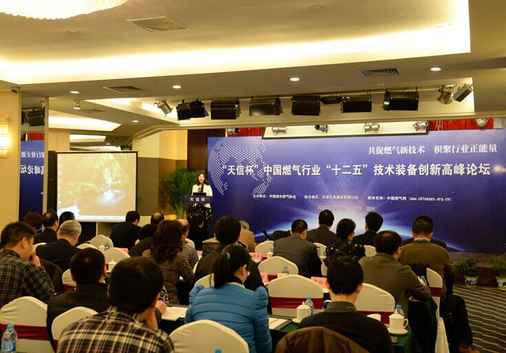 由中國城市燃氣協會主辦、天信儀表集團有限公司協辦的“天信杯”中國燃氣行業“十二五”技術裝備創新高峰論壇和有獎征文活動發布會,于2015年3月7日在溫州瑤溪大酒店隆重舉行。中國城市燃氣協會理事長王天錫、秘書長遲國敬,中國儀器儀表行業協會專職副理事長李躍光,浙江燃氣會秘書長王莉莉,天信儀表集團總裁范叔沙,以及來自業界的專家和領導100多人出席論壇。
