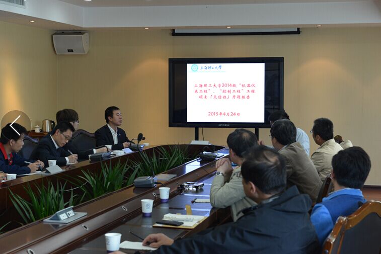 2015年4月24日,天信儀表集團與上海理工大聯合培養碩士開題報告會在公司四樓會議室召開。報告會由副總工程師兼研發中心總監陶朝建主持。來自上海理工大的7位導師現場聆聽了天信學員的開題報告。